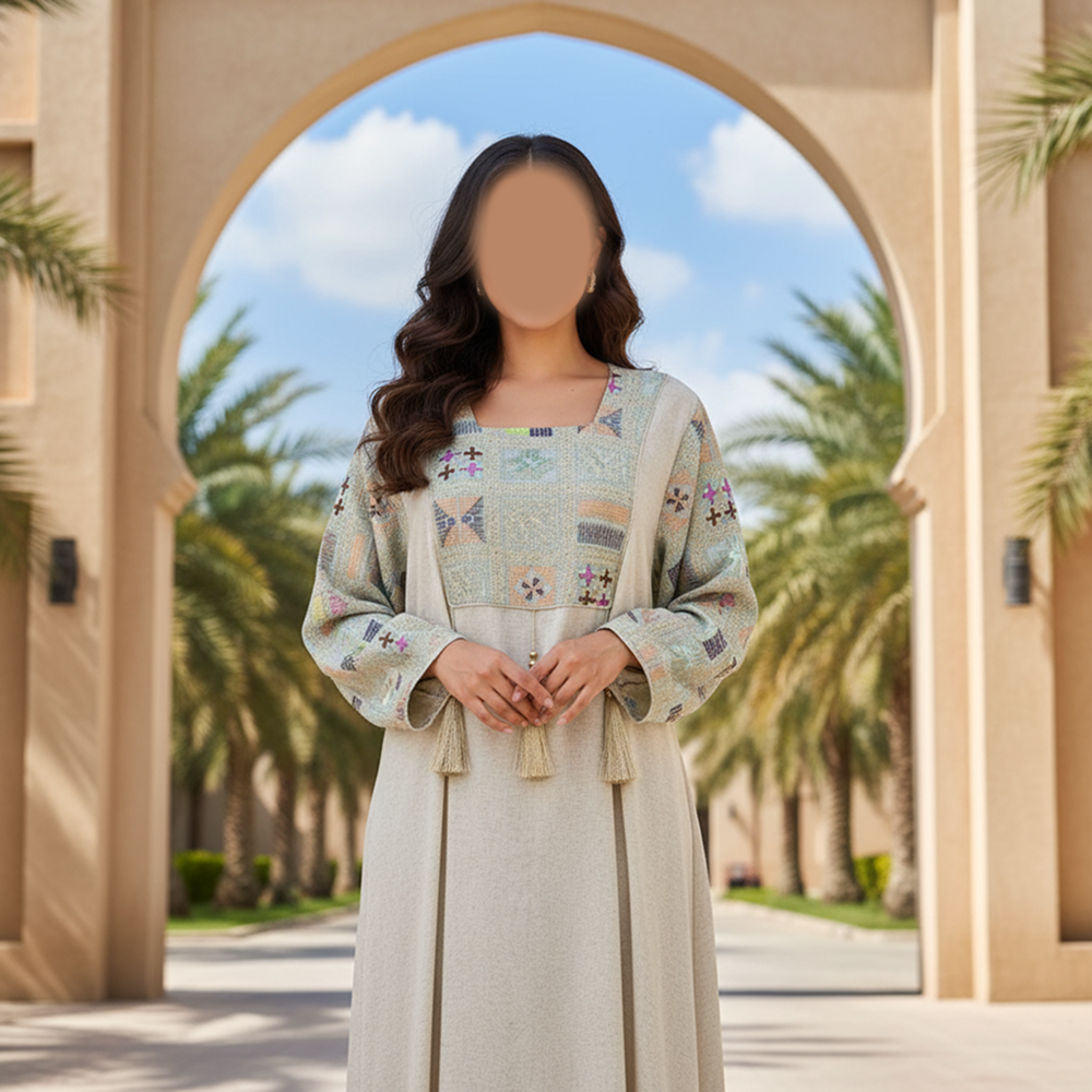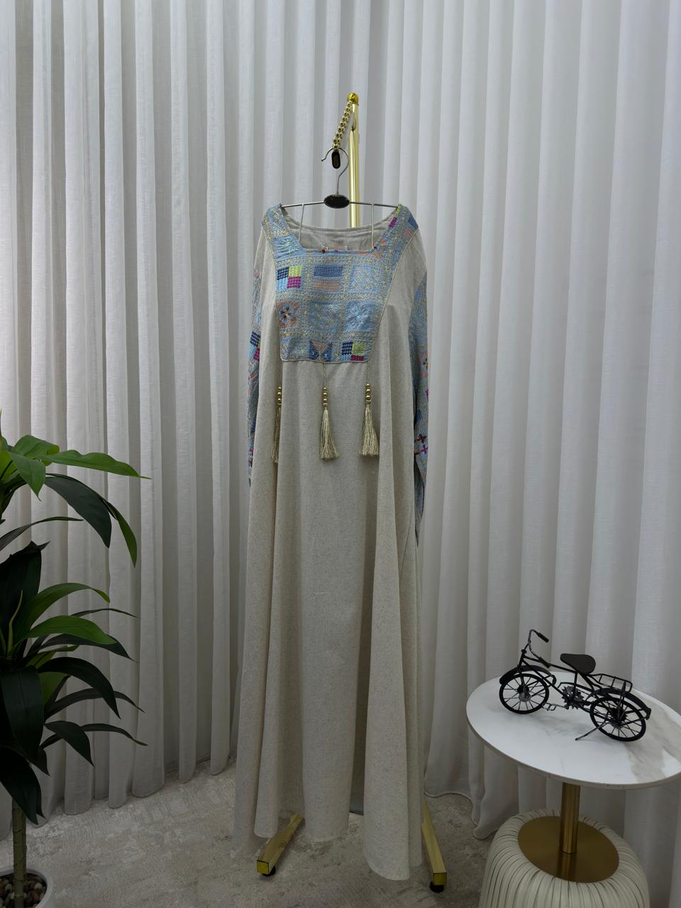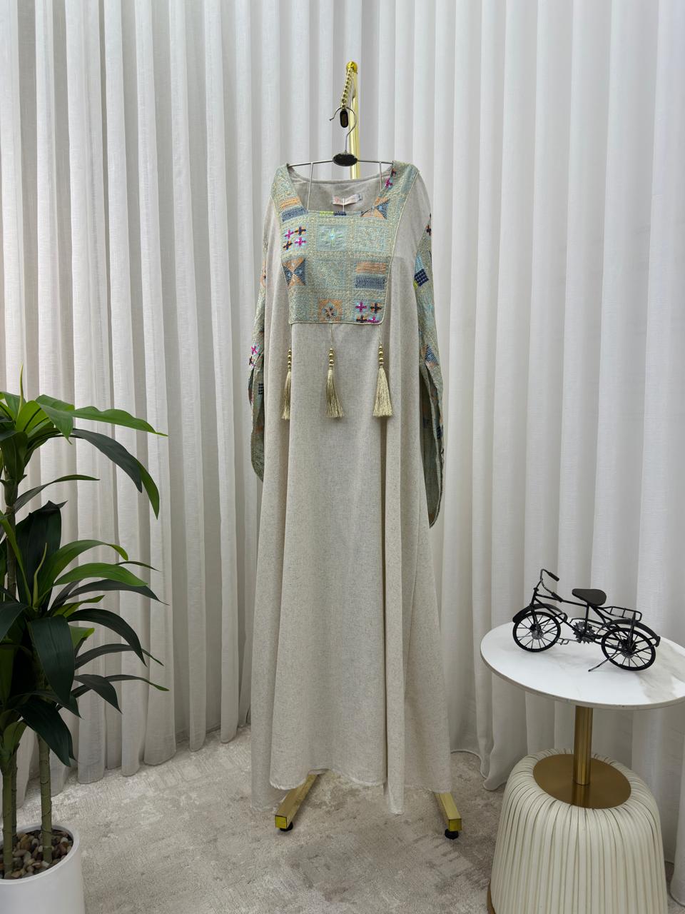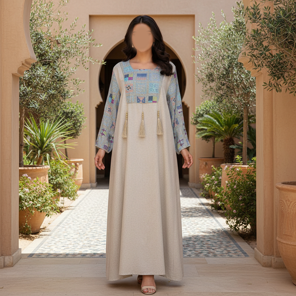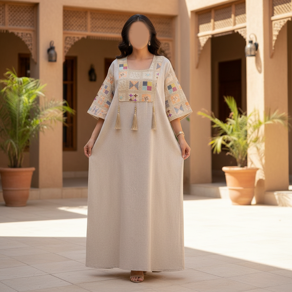جلابيات كتان تقدم لكِ إطلالة عصرية وفاخرة تُضفي أناقة وراحة في آن واحد. هذه الجلابية المصنوعة من قماش الكتان المثالي هي الاختيار الأمثل لمناسبات رمضان والجمعات العائلية الراقية.