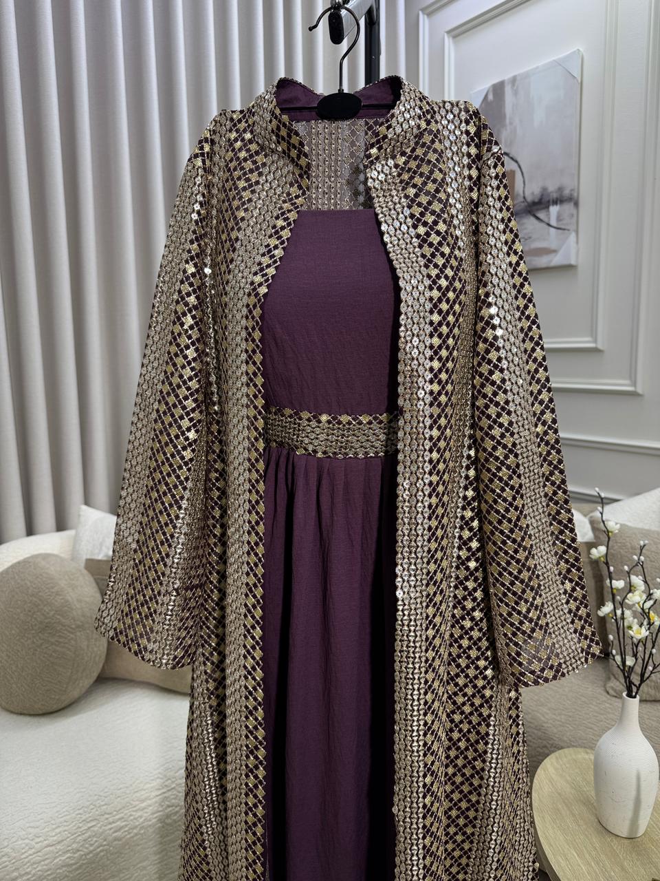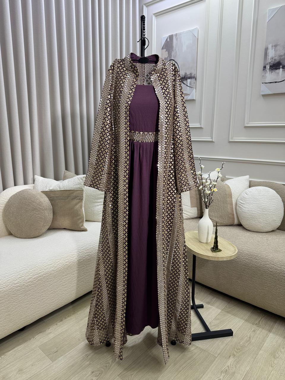 - التصميم: فستان داخلي + طبقة خارجية مفتوحة مطرزة