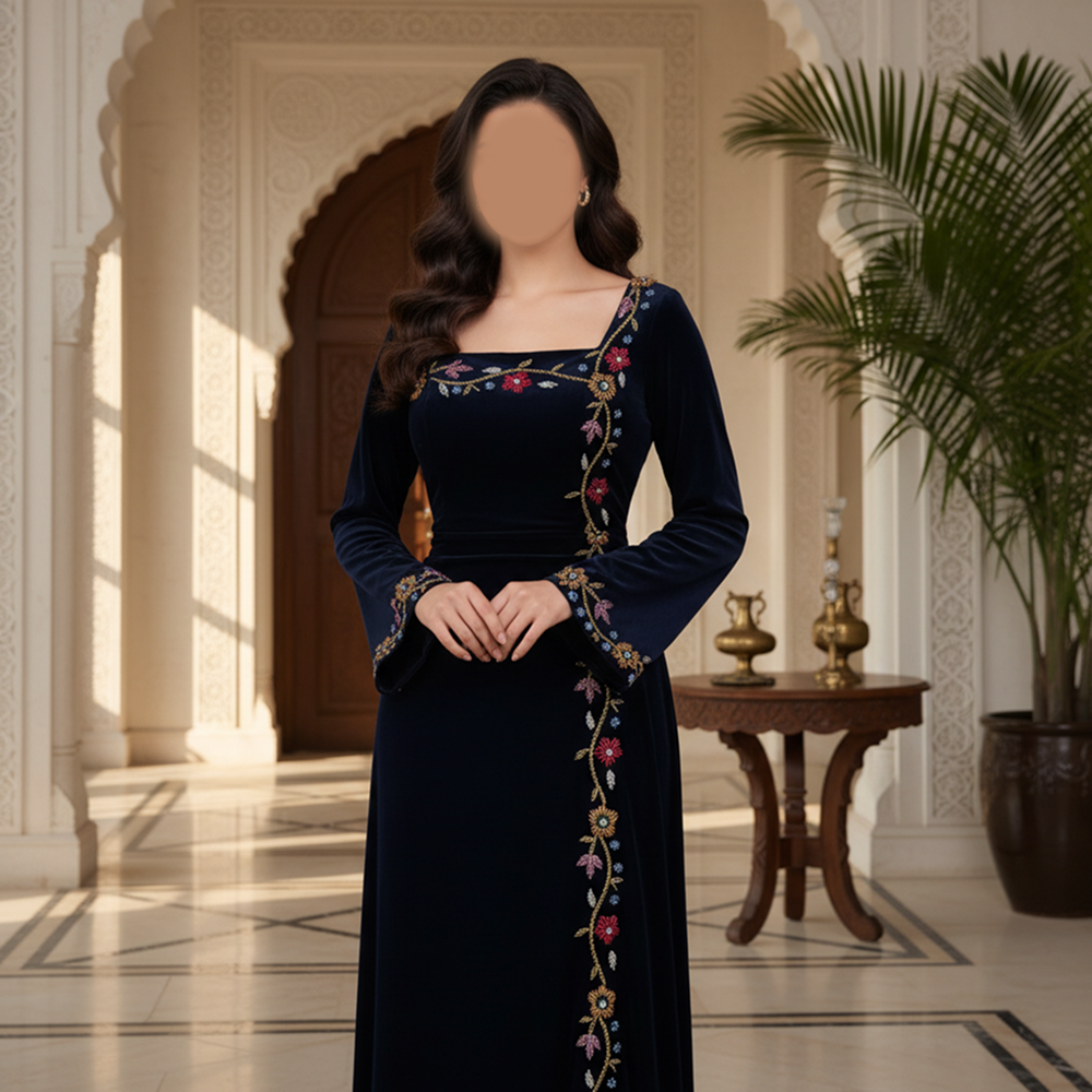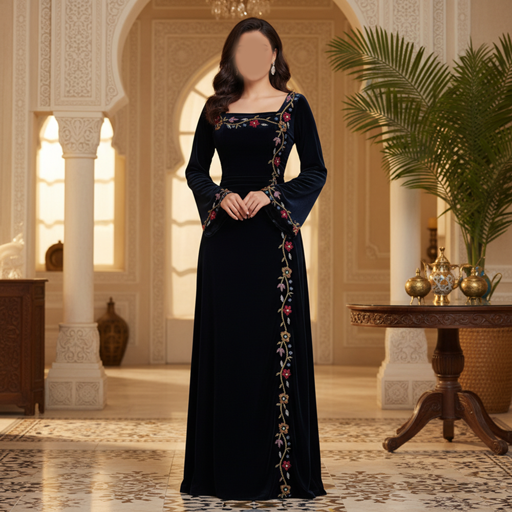 جلابية مخمل كوري +تطريز يدوي