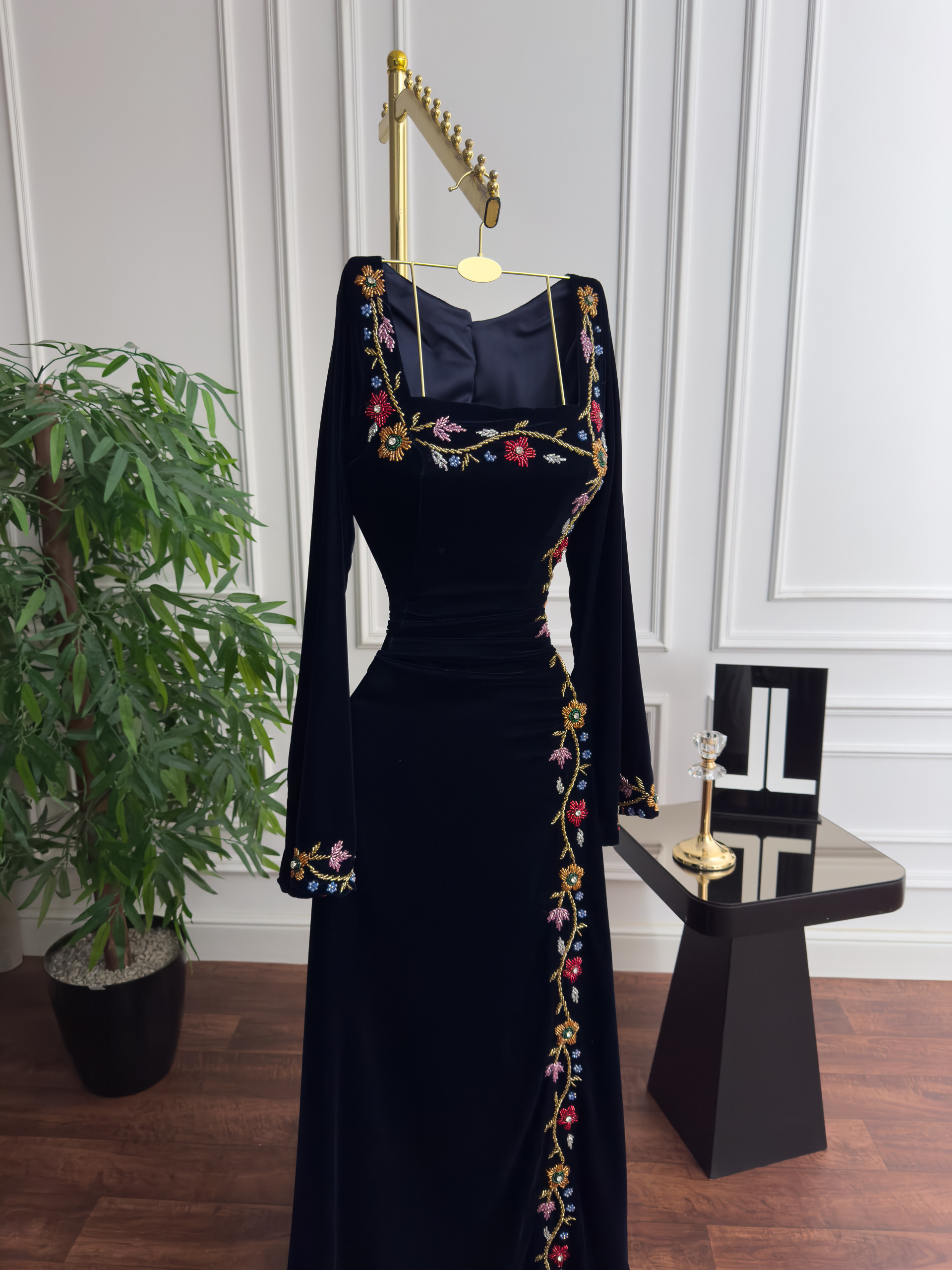 - جلابية مخمل اسود تقدم لكِ إطلالة ملكية وفاخرة بفضل قماش المخمل الكوري الذي يمتاز بالنعومة و اللمسة الراقية.