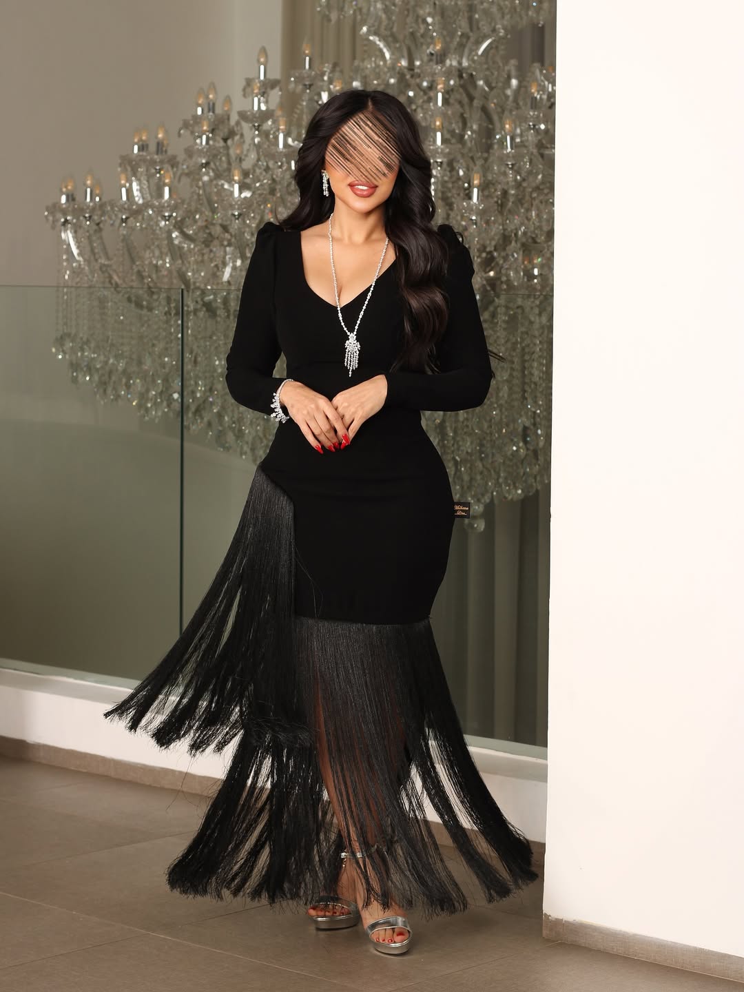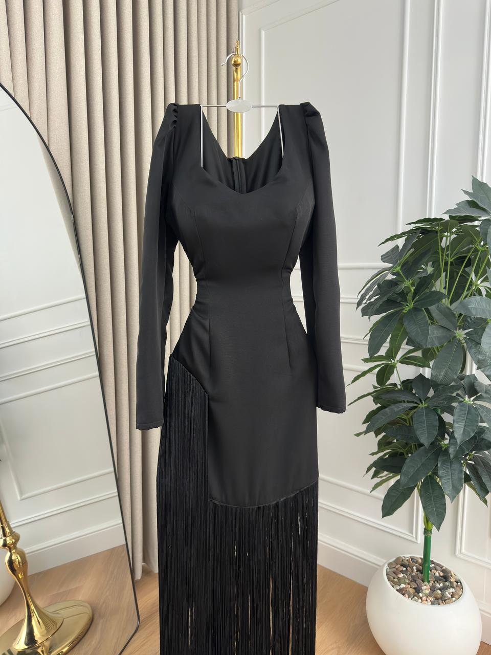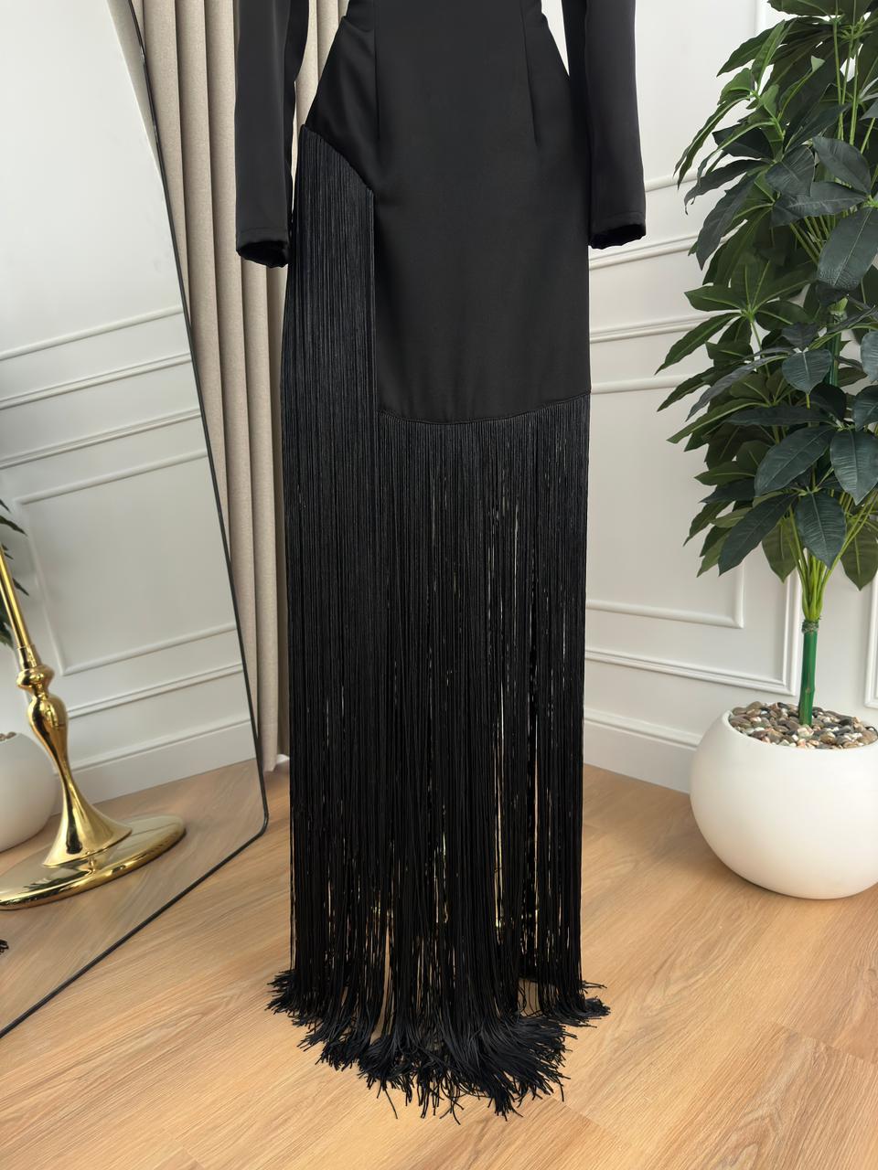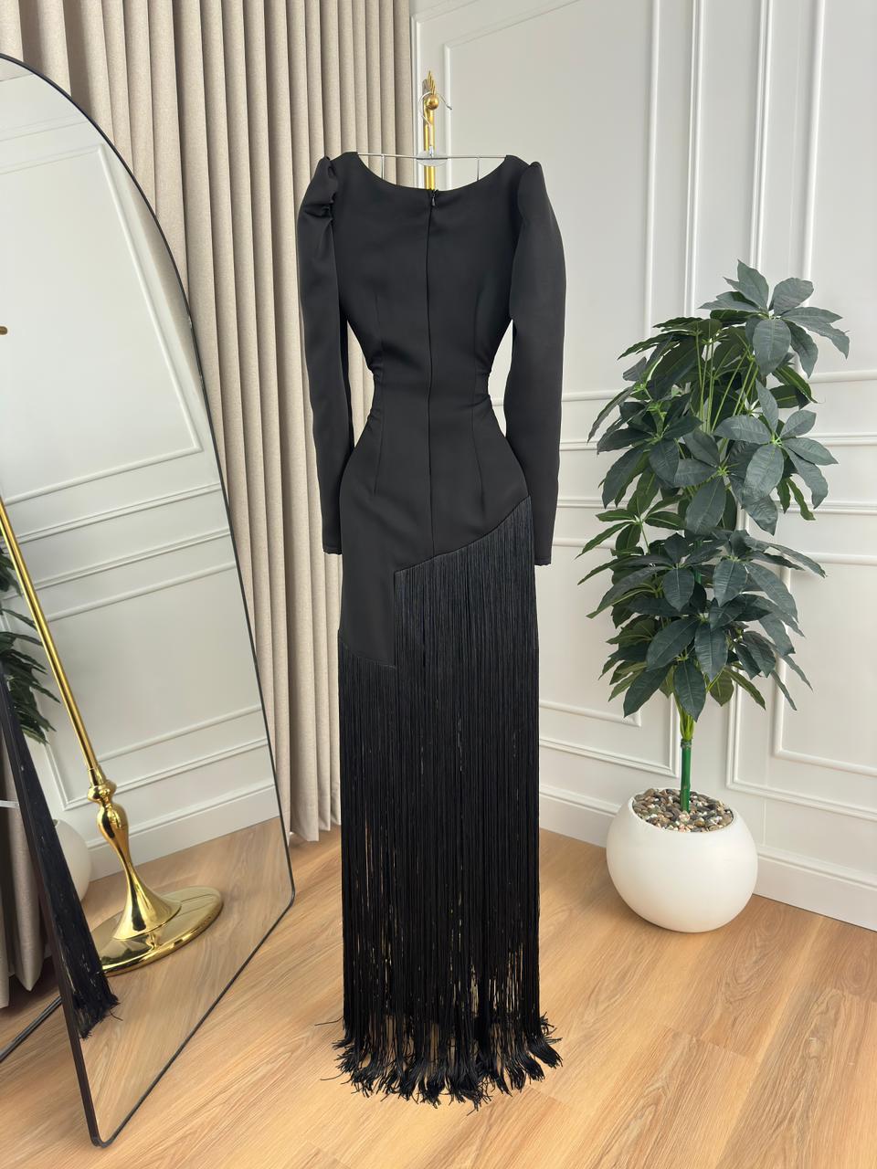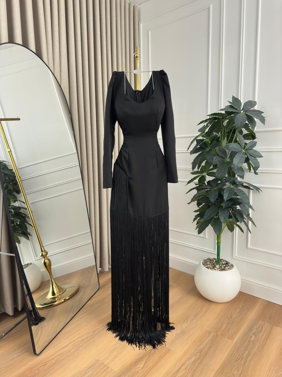 فساتين سهرة هدب يمنحك إطلالة أنثوية عصرية وجذابة في كل سهرة. تصميمه الأنيق مع الشراشيب المتحركة يضفي لمسة حيوية وحركة جذابة على الإطلالة.