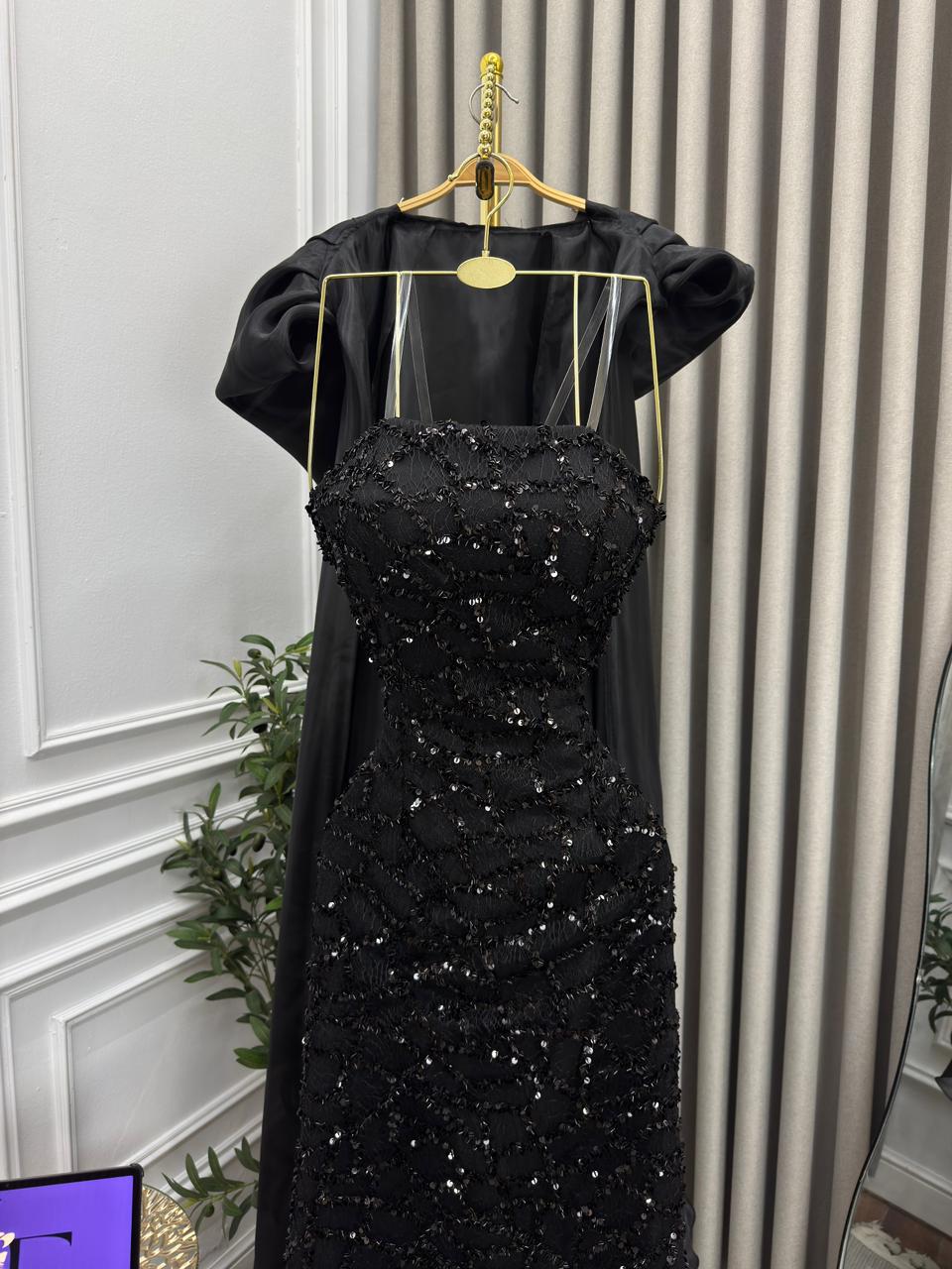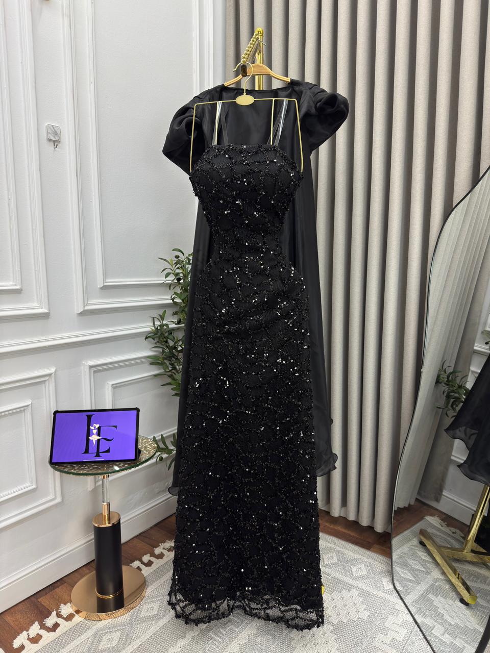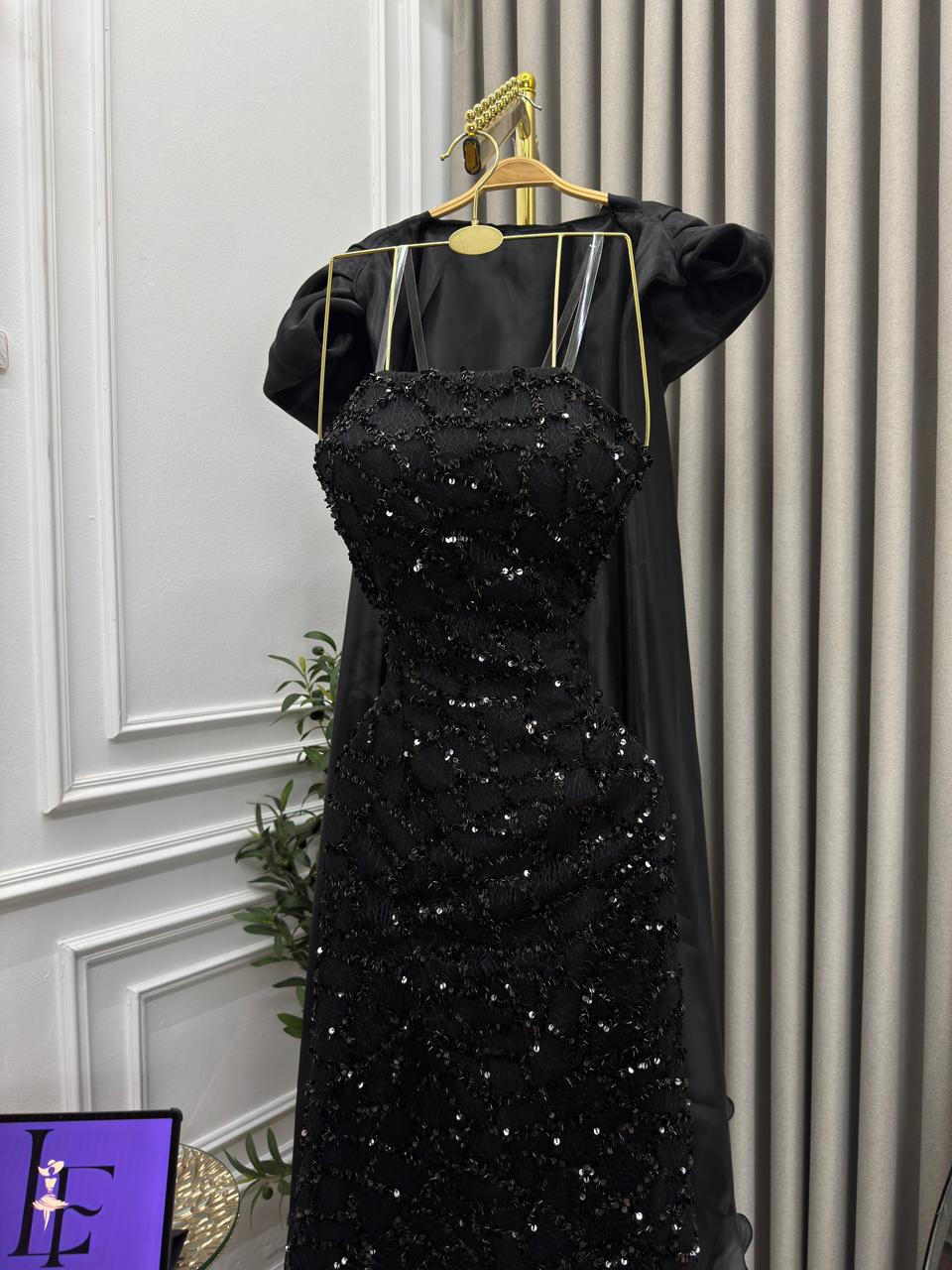فستان أسود مطرز يمنحك إطلالة ملكية وفاخرة في كل سهرة. التصميم الطويل المزخرف بالترتر مع تفاصيل الشيفون يضفي لمسة درامية وأنيقة لا تقاوم.
