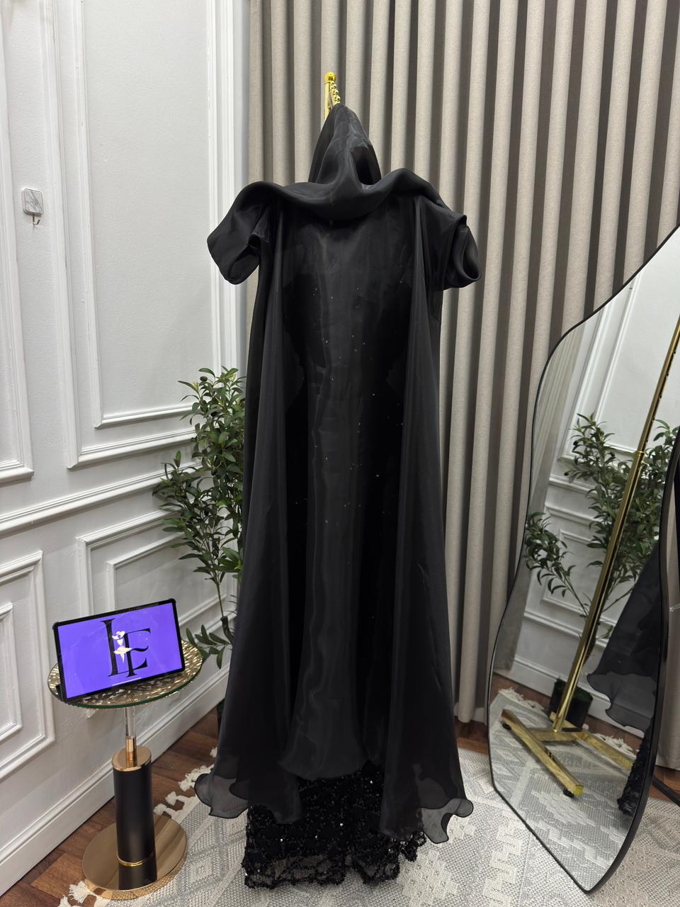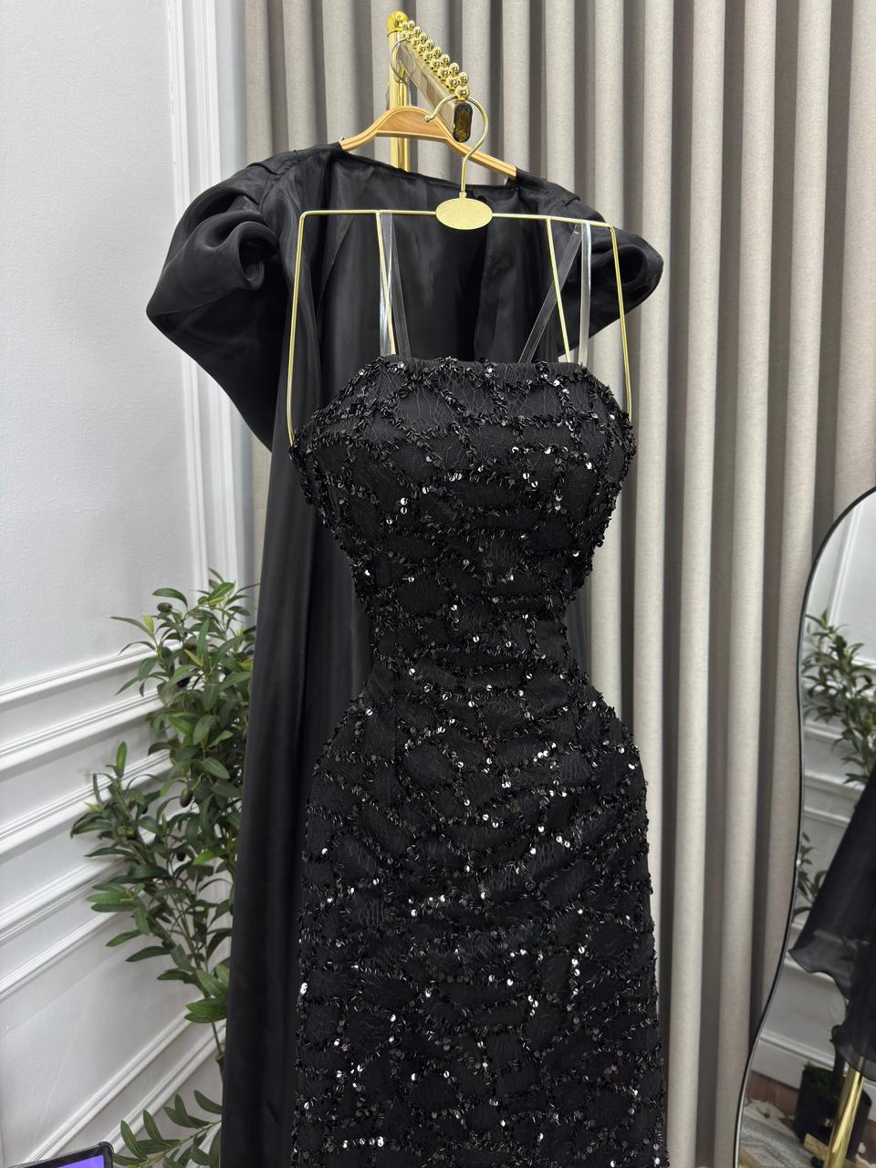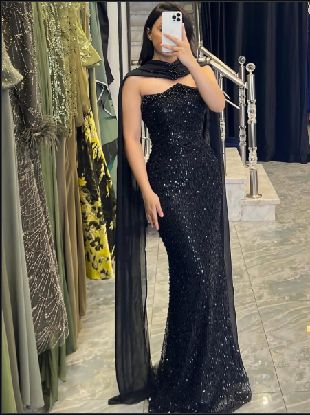 فستان أسود مطرز يمنحك إطلالة ملكية وفاخرة في كل سهرة. التصميم الطويل المزخرف بالترتر مع تفاصيل الشيفون يضفي لمسة درامية وأنيقة لا تقاوم.