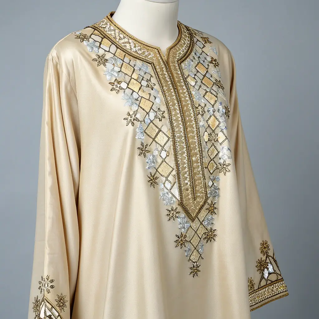 يعرض هذا القفطان الحصري من تصميم مصمم محلي تطريزات معقدة وأنماط نابضة بالحياة، مما يعكس الحرفية التقليدية بلمسة عصرية. مصنوع من نسيج فاخر، ويوفر مقاسًا فضفاضًا ومريحًا مثاليًا للمناسبات الخاصة أو الفعاليات الثقافية. يسلط التصميم الفريد الضوء على المواهب المحلية ويضيف لمسة مميزة إلى خزانة ملابسك.